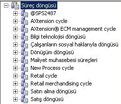 Mevcut süreç döngüleri sistemde tanımlanmış standart görevleri içerir. Bu görevleri incelemek veya süreç döngüsüne yeni bir görev eklemek için döngü isminin solundaki + butonuna tıklanır:
